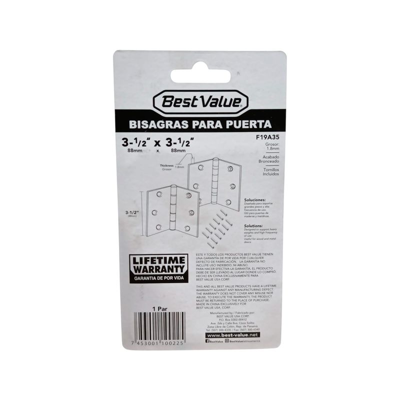 BISAGRA CUADRADA 2 PZAS BEST VALUE:3-1/2"X3-1/2":BRONCE ANTIGUO